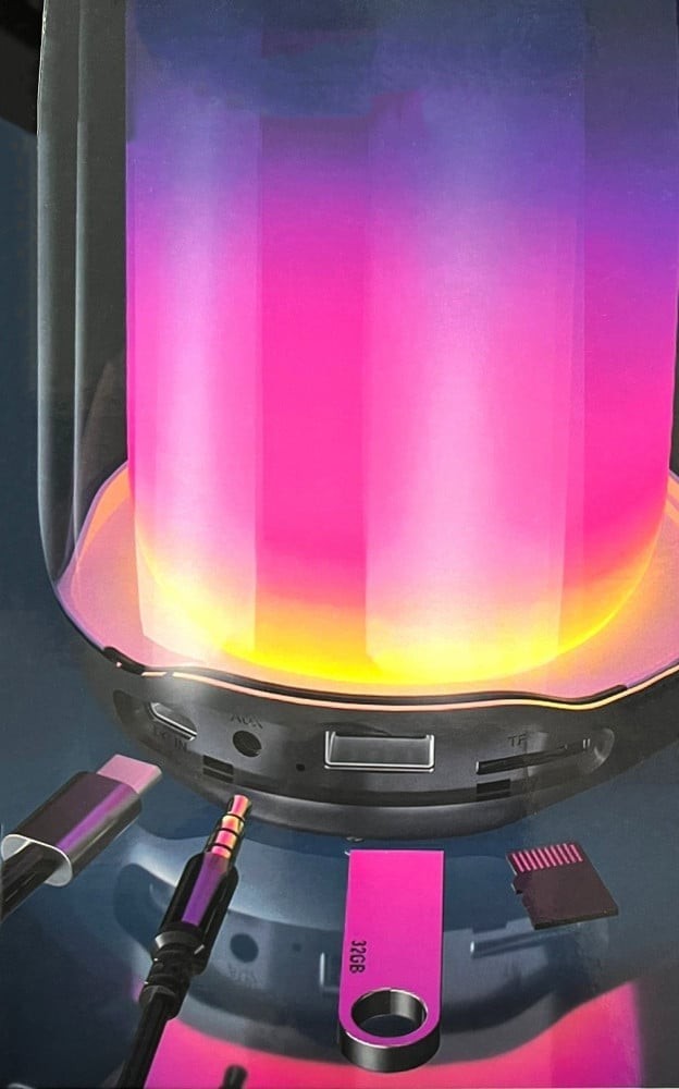 مكبر صوت - سبيكر بلوتوث مع اضاءة ليد 360 درجة من باستك لون اسود