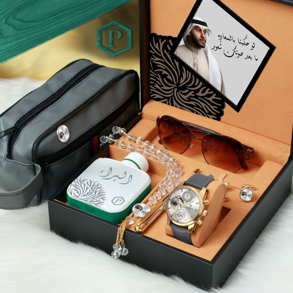 اطقم رجالية فخمة من برستيج هي الخيار المثالي لكل من يسعى للأناقة والتميز. تتضمن هذه الأطقم الرائعة ساعة جلد كلاسيكية ذات تصميم أنيق، كبك، عطر، ونظارة، مما يجعلها هدية مثالية أو إضافة فاخرة لمجموعتك الشخصية.