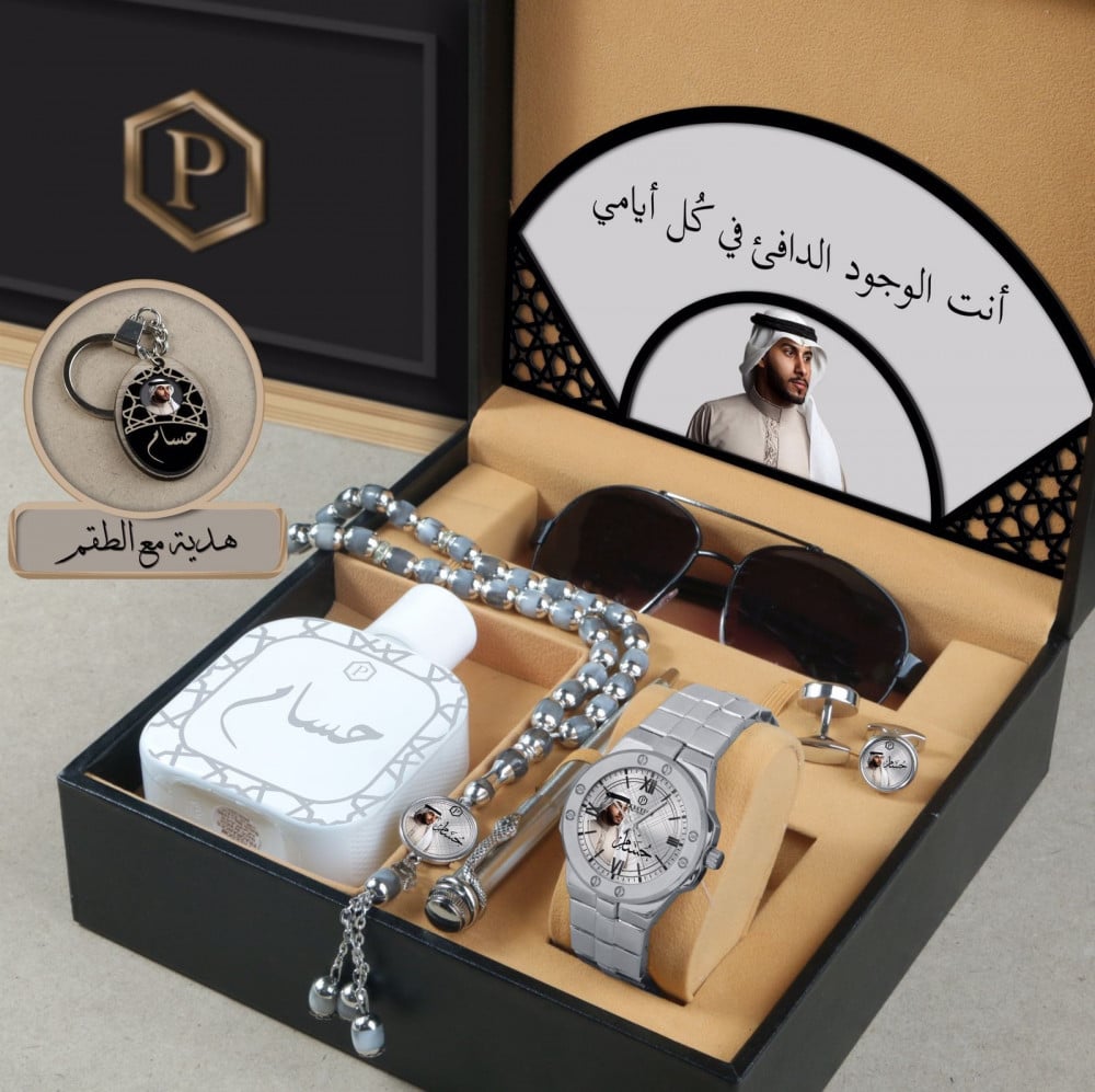 طقم اهداء رجالي برستيج فاخر هو الخيار المثالي لمن يسعى للأناقة والتميز. هذا الطقم الفاخر يجمع بين مجموعة من العناصر الراقية التي تجعل من كل لحظة تجربة لا تُنسى. يحتوي الطقم على ساعة جلدية كلاسيكية، كبك، سبحة، قلم، نظارة، وميدالية، مما يجعله هدية مثالية لكل المناسبات.