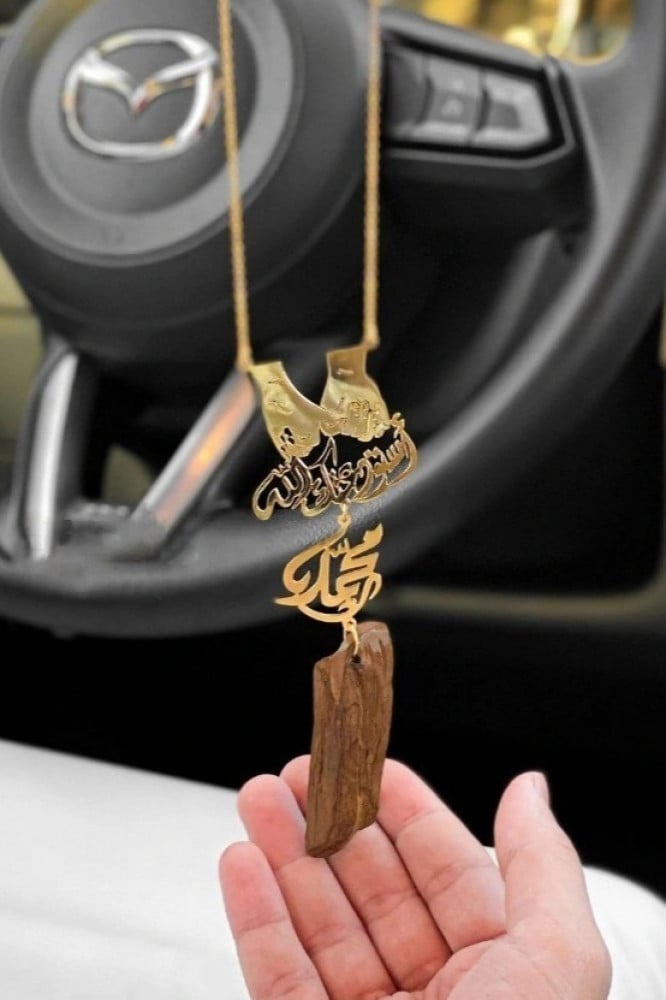 تعليقة سيارة بالاسم هي إضافة رائعة لأي سيارة، حيث تجمع بين الأناقة والوظائف العملية. تتميز تعليقة بحفر ماسكين يد بعض بتصميم فريد من نوعه، حيث تمتاز بلونها الذهبي اللامع الذي يضفي لمسة من الفخامة على داخل السيارة.