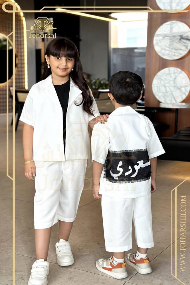 ارتدي الفخر مع جاكيت اليوم الوطني للأطفال! يتميز هذا الجاكيت بتصميم أنيق وجذاب يجسد التراث السعودي من خلال تطريز سعودي فاخر، مما يجعله الخيار المثالي للاحتفال باليوم الوطني. مصنوع من قماش كريب كوري عالي الجودة، يتمتع الجاكيت بملمس ناعم ومريح، مما يضمن راحة طفلك طوال اليوم. ارتدي الفخر في اليوم الوطني السعودي مع جاكيت أنيق للأطفال. تصميم مميز يعكس التراث والانتماء ، ليضفي لمسة من الأناقة الوطنية على إطلالة أطفالكم. جاكيت اليوم الوطني من متجر جوهرتش