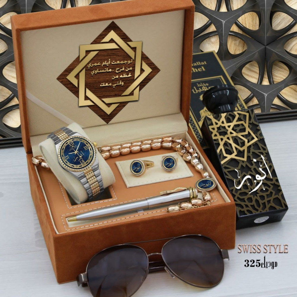 استمتع بأناقة لا تضاهى مع سويس ستايل رجالي 2025! هذا الطقم المميز يجمع بين الفخامة والوظائف العملية، حيث يتضمن ساعة فخمة ذات تصميم أنيق، قلم أنيق، كبك، نظارة شمسية، وعبوة عطر مخصصة. مع ستايل رجالي 2025، ستكون دائماً في قمة الأناقة.