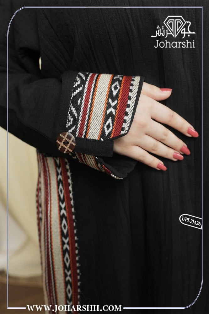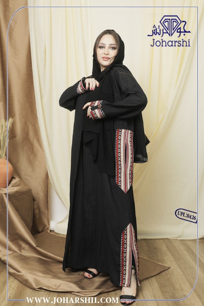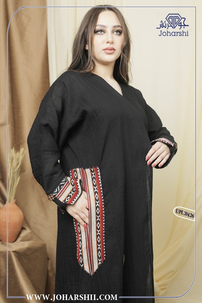 عباية حرير مغسول باضافة السدو ملون هي عباءة أنيقة وناعمة مناسبة للارتداء اليومي أو للمناسبات الخاصة.